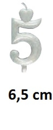 ROSE DECOR ŚWIECZKA "5" PERŁOWO SREBRNY 6,5 CM